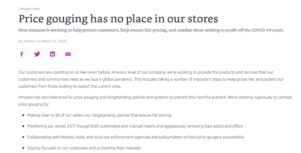 Of course, Amazon’s response was to distance itself from price gouging in March 2020: