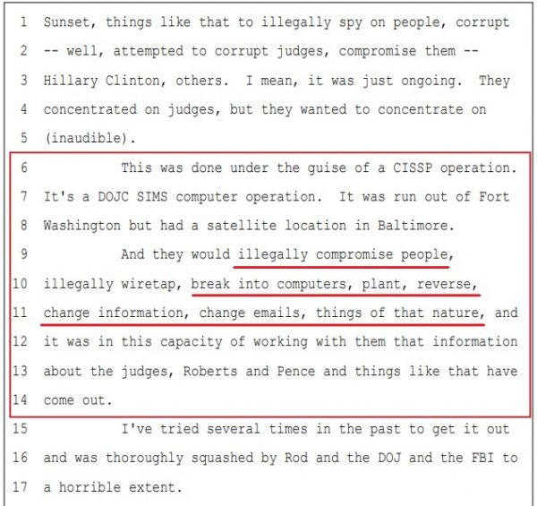 Attorney Lin Wood has released an interview with a whistleblower [pdf here] who operated for years within part of the apparatus connected to Deep State surveillance. While the focus is upon the activity of Rod Rosenstein and even Mike Pence as it relates to the Trump administration, there is part of the interview that connects to a much deeper aspect. The testimonial connects a larger story if you know what to extract.