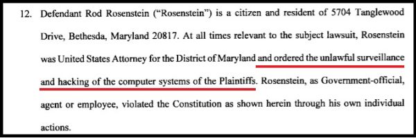 According to the updated lawsuit (full pdf below) Rod Rosenstein, as the U.S. Attorney for Maryland, was in charge of the Obama 2011 and 2012 operation to monitor journalists specific to Ms. Attkissons reporting on Fast-n-Furious and Benghazi.